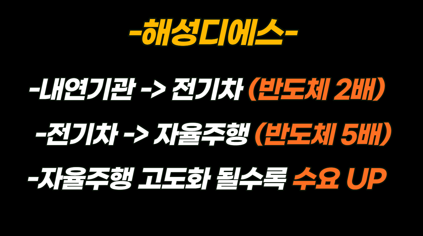 그리고 자율주행이 점점 발전할수록 차량용 반도체의 수요는 같이 증가하게 됩니다.
