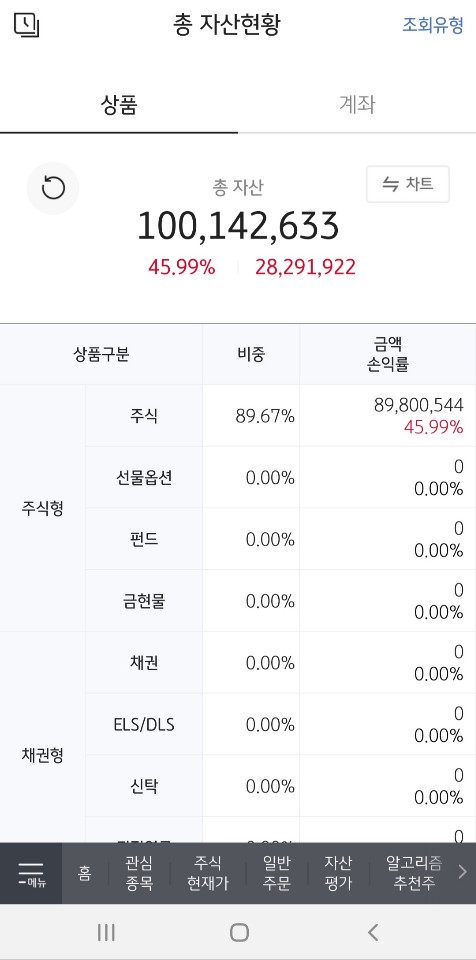 그리고 현재는 45% 정도의 수익률로 1억이라는 돈을 만드는 데 성공했습니다.