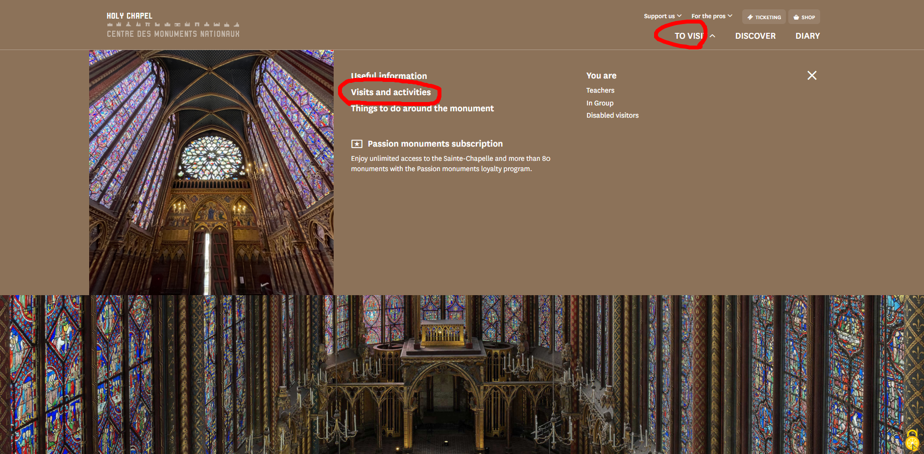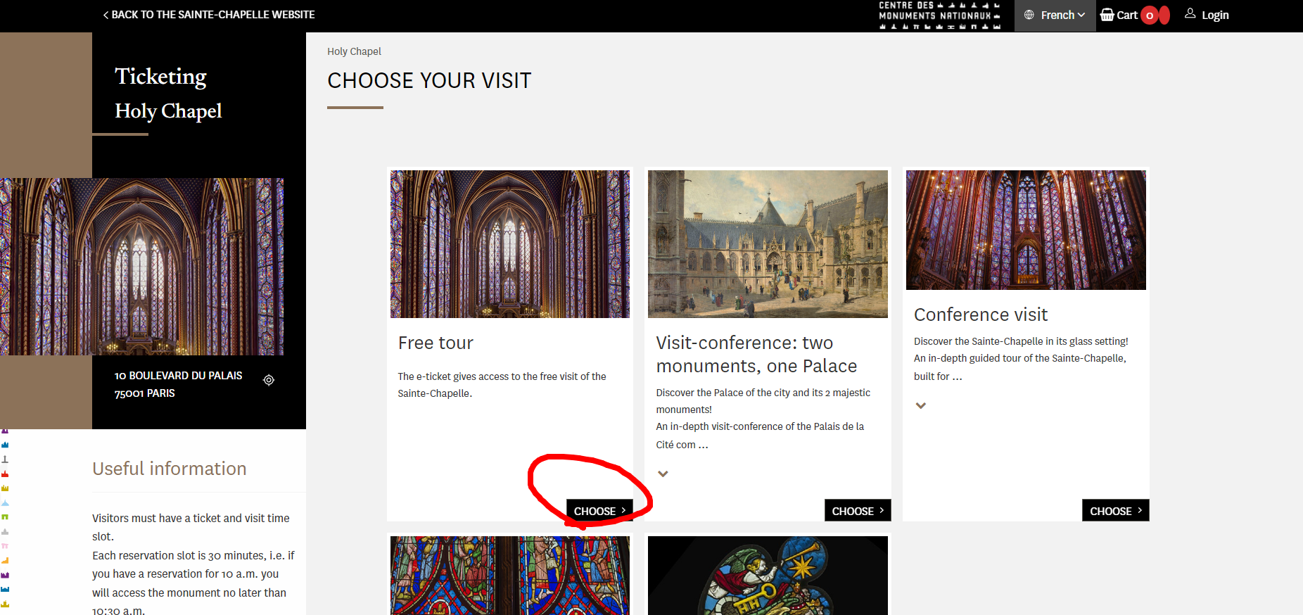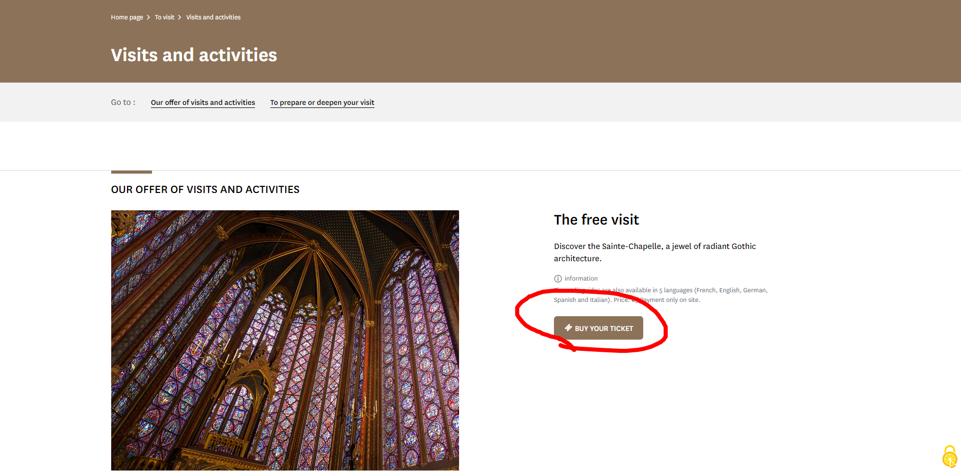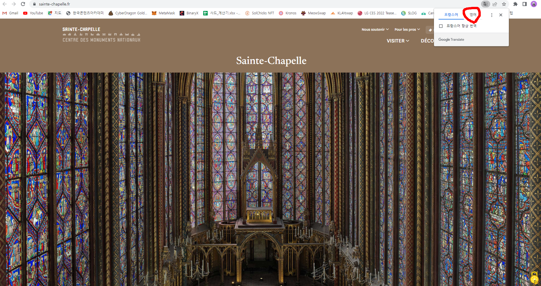 위의 링크로 접속합니다(생트 샤펠 공식 홈페이지)