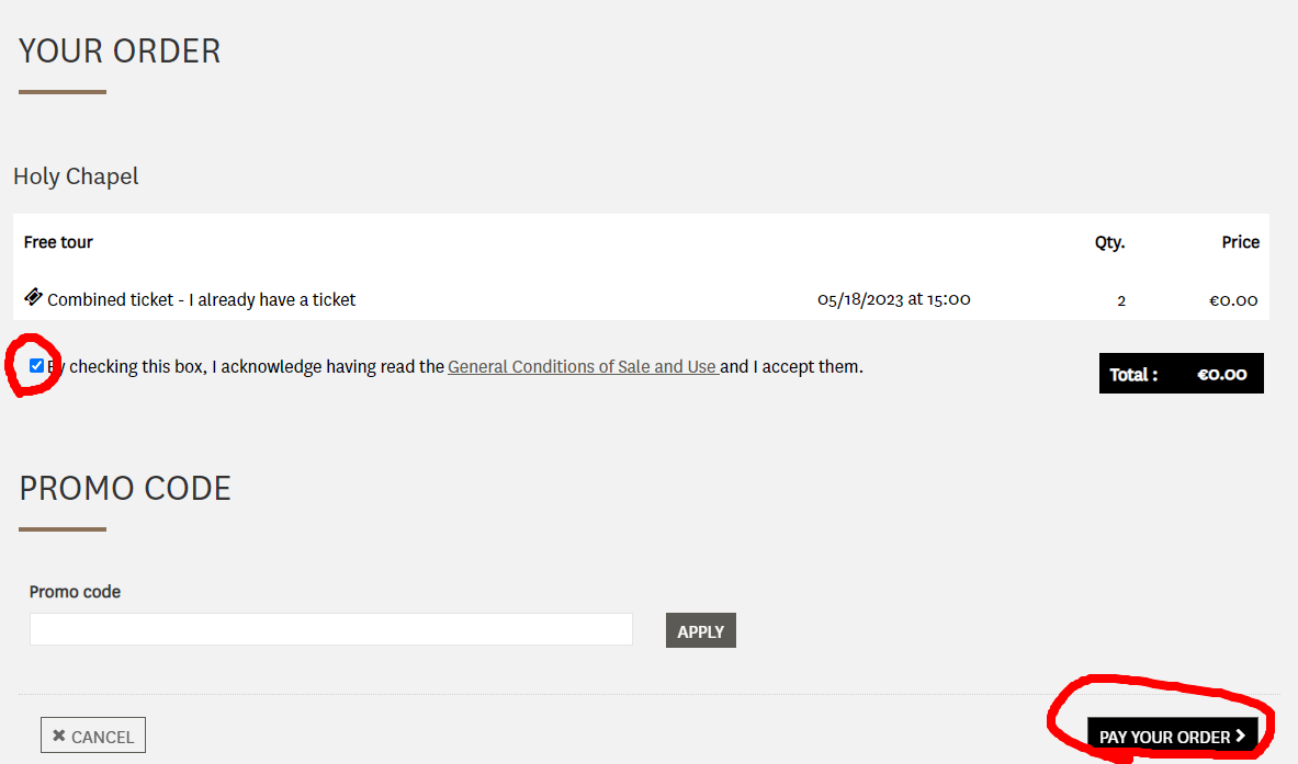 체크란에 체크를 해주시고 PAY YOUR ORDER 눌러주세요.