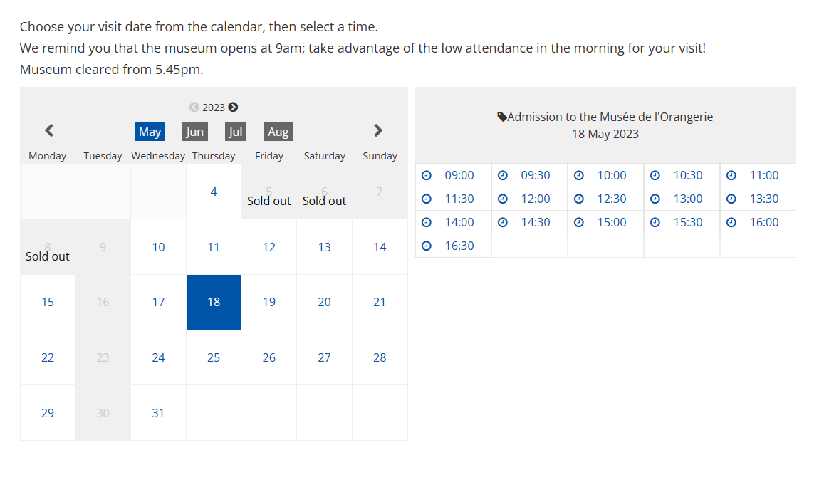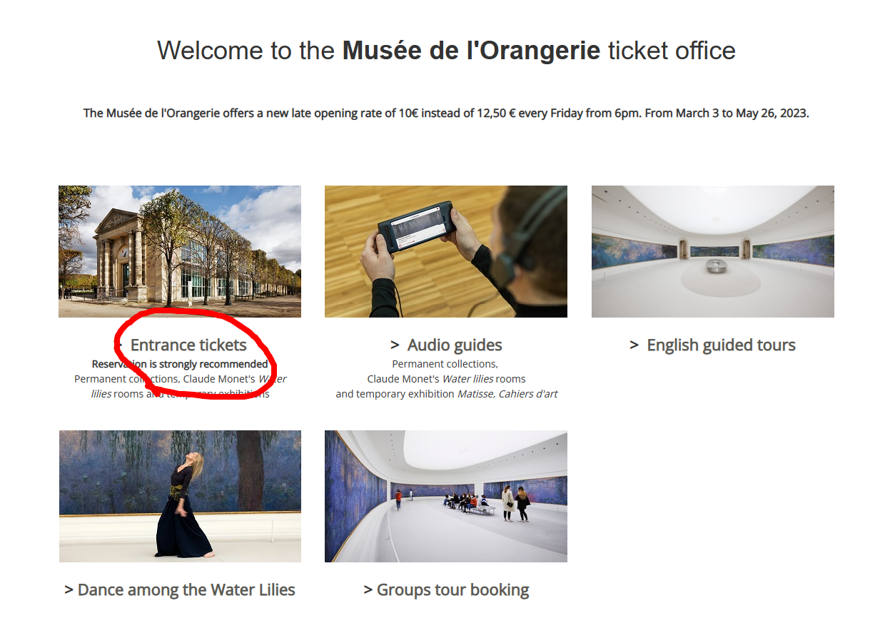 오랑주리 미술관 역시 파리에서 인기가 많은 미술관이기 때문에 예약을 하고 가시는 게 시간을 아낄 수 있습니다.