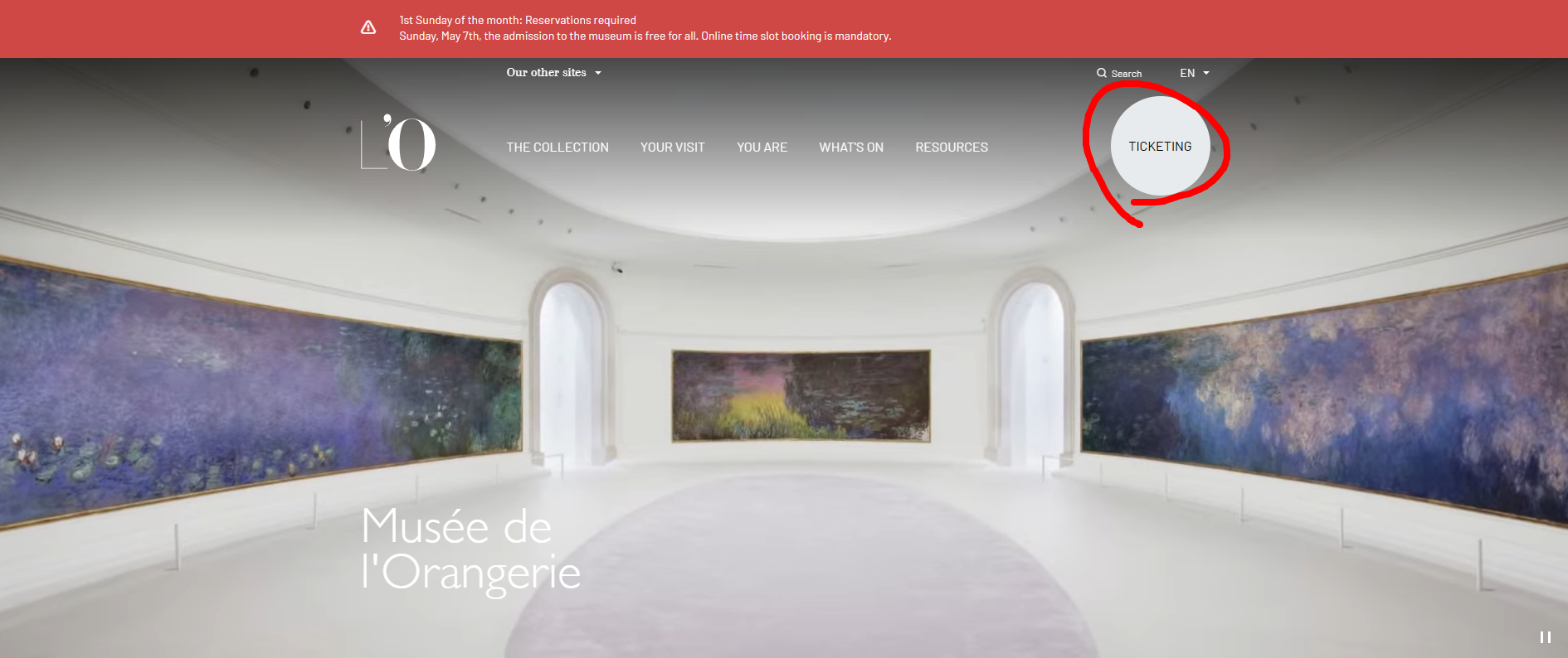 위의 링크에 접속해줍니다(오랑주리 미술관 홈페이지)
