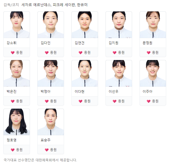 파리올림픽 예선 멤버에서 이한비, 권민지 선수가 빠진 구성입니다.