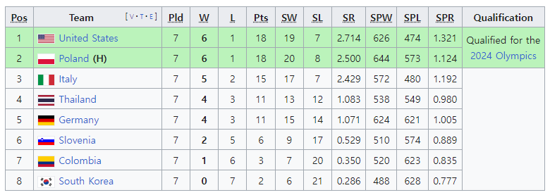 대회 초반에는 폴란드, 독일, 미국 등 강팀들에게 패하긴 했지만 한 세트 이상을 따내며 나름 괜찮은 출발을 보였습니다.