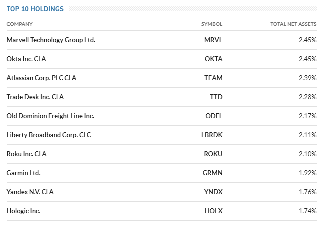 이미 시가 총액이 높은 나스닥 종목을 제외하고 앞으로 성장이 기대되는 중소형주에 투자하는 ETF입니다. 1주당 가격은 약 30달러로 매우 낮은 편에 속합니다.