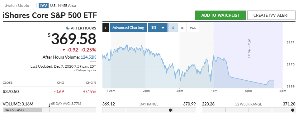 1주당 가격은 369달러로 SPY와 비슷합니다. 배당은 주당 1.51달러이며 운용보수는 0.04%로 이 두 가지만 비교한다면 SPY보다는 조금 더 낫다고 할 수 있습니다.