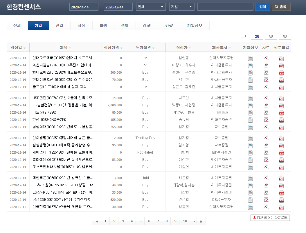 증권사 리포트들을 모두 볼 수 있는 사이트입니다. 주식 종목 분석에는 역시 전문가들의 도움이 필요합니다. 증권사에 계신 분들만 한 전문가도 많이 없죠.