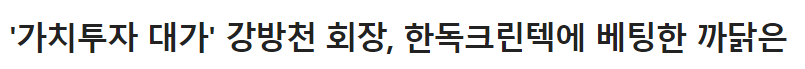 한독크린텍은 가치투자로 유명한 강방천 회장의 픽으로도 유명하죠. 물론 회장님은 일찌감치 엄청 낮은 가격에 매수하셨더군요....