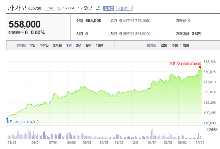 카카오가 액면분할의 저주를 뚫고 지금처럼 빠르게 주가가 오를 수 있을지 지켜봐야겠습니다.